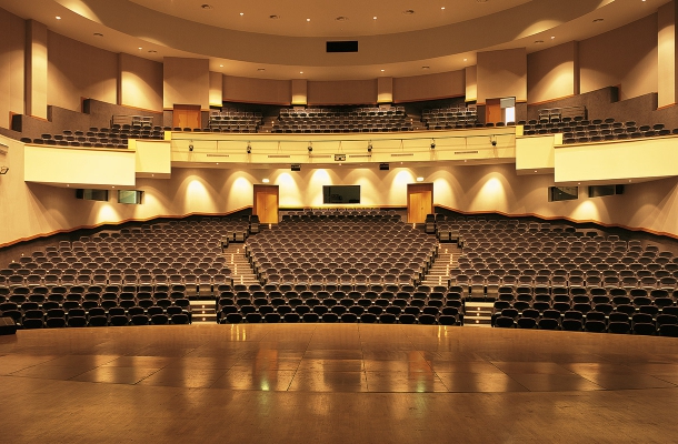 The project housing multi-purpose venues for cultural activities detaches itself in its context and presents a main tilted elevation to the busy adjacent Beirut-Tripoli highway.